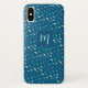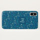 Personalisierte blaue Regentropfen iPhone Gehäuse mit Name monogram. Schöne Wassertropfen in verschiedenen Blautönen, aquamarin und türkisfarben. Passen Sie dieses schöne blaue Aqua-Muster mit Ihrem Namen oder einem ersten Namen an.