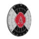 Geometrisches Muster in Schwarz, Rot und Weiß mit monogrammaler Dekoration
