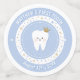 Personalisiert Baby's First Tooth Party Konfetti Dekorationen. Babyblau und weiß mit niedlichem Zahn, bearbeitbarer Name, Monogramm und Meilenstein Datum. Besuchen Sie den Shop, um alle Kollektionen von First Tooth zu sehen.