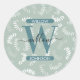 Monogramm der aquamarinen grünen botanischen Blätt Runder Aufkleber
