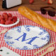 Diese monochromen Teller haben eine monochrome Bauweise mit einer blau-weiß-gefliesten Konstruktion, in der Mitte ein Monogramm des Single. Diese Teller sind ideal für ein Tee-Party, Geburtstagsparty, Erwärmung oder Brautparty.
