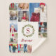 Erstellen Sie ein einzigartiges, mit Ihrem Familiennamen Monogramm und 12 Fotos personalisiertes Keepake Foto Decke. Dieses hübsche Weihnachtsdesign besticht durch einen blumengeschmückten Wasserblumenkranz aus Grün und heilige Beeren rund um Ihren Monogramm-Initial. Fügen Sie unten Ihren Namen oder einen anderen benutzerdefinierten Text in einem stilvollen Skript-Schriftart hinzu. Die Vorlage für die Zusammenstellung von Fotos hat Platz, um 12 verschiedene Fotos hinzuzufügen. Eine perfekte Art, Erinnerungen aus dem vergangenen Jahr zu erfassen oder jedes Bild mit Fotos der Enkel zu füllen, als einmaliges Urlaubsgeschenk für Oma und Opa! Verwenden Sie die Entwurfswerkzeuge, um eine beliebige Hintergrundfarbe auszuwählen, die Schriftart und Farben zu bearbeiten oder um mehr Fotos hochzuladen, um Ihr eigenes Design zu erstellen.