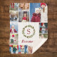 Erstellen Sie ein einzigartiges, mit Ihrem Familiennamen Monogramm und 12 Fotos personalisiertes Keepake Foto Decke. Dieses hübsche Weihnachtsdesign besticht durch einen blumengeschmückten Wasserblumenkranz aus Grün und heilige Beeren rund um Ihren Monogramm-Initial. Fügen Sie unten Ihren Namen oder einen anderen benutzerdefinierten Text in einem stilvollen Skript-Schriftart hinzu. Die Vorlage für die Zusammenstellung von Fotos hat Platz, um 12 verschiedene Fotos hinzuzufügen. Eine perfekte Art, Erinnerungen aus dem vergangenen Jahr zu erfassen oder jedes Bild mit Fotos der Enkel zu füllen, als einmaliges Urlaubsgeschenk für Oma und Opa! Verwenden Sie die Entwurfswerkzeuge, um eine beliebige Hintergrundfarbe auszuwählen, die Schriftart und Farben zu bearbeiten oder um mehr Fotos hochzuladen, um Ihr eigenes Design zu erstellen.