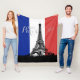 Diese gemütliche Fleece-Decke ist mit einer schwarzen Eiffelturmgrafik mit "Paris" in modernem Skript ausgestattet, mit einem Namen, den Sie personalisieren können. Der Hintergrund ist die rote, weiße und blaue Flagge Frankreichs. Entworfen von weltberühmten Künstler ©Tim Coffey.