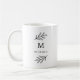 Diese einfache und trendige Tasse bietet schwarze Illustrationen einfacher botanischer Blätter, zusammen mit Ihrem Monogramm und Namen.
