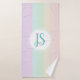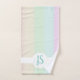 Dieses niedliche, farbenfrohe Monogramm-Design verfügt über einen pastellfarbenen gestreiften Regenbogen mit Platz für die Personalisierung des Handtuchmodells mit den Initialen Ihres Mädchens. Ideal für jedes kleine Mädchen in Ihrem Leben.
