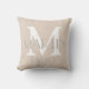 Neutrale Farbe des Beige-Wurfkissens, die sowohl für Monogramm als auch für Nachnamen mit weißem Buchstaben angepasst werden kann. Wunderbarer Zuhause Akzent für Ihr Wohnzimmer oder als Geschenk.