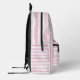 Dieser niedliche Backpack ist in einem spielerischen Design mit rosa und weiß gestrichenen Aquarellstreifen gestaltet und wird durch ein Monogramm aus niedlicher Blume ergänzt. Sie können es mit dem Namen Ihres Kindes personalisieren, indem Sie auf "Dieses Design personalisieren" klicken, und Zazzle übernimmt die Erholung. Bestelle noch heute!