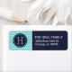 Niedliche personalisierte Rücksendeadressen-Aufkleber. Das Design zeichnet sich durch ein trendiges Polopunktmuster aus, bei dem das Monogramm in einem Kreisrahmen initialisiert wird. Klicken Sie auf Anpassen, um Schriftart und Farben zu ändern, oder fügen Sie eigene Texte und Bilder hinzu, um ein einzigartiges Design zu erstellen.