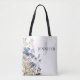 Dieses schlichte, aber elegante Mongram Tote-Design besticht durch einen rustikalen Aquarellbukett aus lila, gelben, weißen und bordeauxfarbenen Wildblumen mit Grünpflanzen. Macht auch ein großartiges Brautjunggeschenk! Erstellt von der einfachen Farmhouse Press.