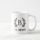 Moderne Bauernkaffeemarke Tasse personalisiert mit Ihrer Familie Monogramm Initial und Name in einem rustikalen Zweig. Verwenden Sie die Designtools, um eigene Texte und Fotos hinzuzufügen, um ein einzigartiges Geschenk für frisch vermählte oder häusliche Erwärmung zu schaffen.