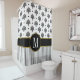 Monogramm der Schwarz-weißen Damaskuspunkte Duschvorhang