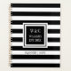 Stilvolle, personalisierte Initialen, Monogramm-Planer mit einem schwarz-weiß gestreiften Muster mit Ihren Initialen und Familiennamen mit Ihrem etablierten Datums-Set in einem schwarzen Quadrat mit klassischem Weißtext. Entwickelt von Thisisnotme©
