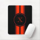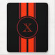 Rote Rennstreifen auf einem klassischen schwarzen Mauspad mit Monogramm oder Glückszahl. Ändern Sie die Streifen, den Hintergrund und den eleganten Schriftart in jede beliebige Farbkombination. Fügen Sie benutzerdefinierte Rennen-Autostreifen über ein spezielles Foto hinzu, indem Sie das transparente Platzhalterbild im Hintergrund ersetzen. Karo in unserem Shop für coolere Geschenke für Autoliebhaber, Rennfans und Fahrbegeisterte. ♡ Idyllfire