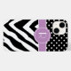 Monogramm der schwarzen und Lila Zebra-Polka-Dots Case-Mate iPhone Hülle