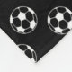Weiße Fußbälle verstreut auf einem soliden schwarzen Hintergrund. Personalisieren Sie mit Ihrer Wahl der ersten.
