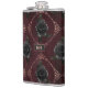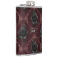 Vintage gotische Flasche mit schwarzen Rose vor bordeauxrotem Hintergrund.