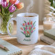 Bringen Sie die Schönheit des Frühlings in Ihren Alltag mit unseren bezaubernden Aquarelltulips personalisierte Kaffee-Tasse! Diese Tasse mit einem atemberaubenden Grafikdesign von Tulpen in einem hübschen Topf ist ideal für Naturliebhaber und alle, die die zarte Blumenkunst schätzen. Fügen Sie Ihrer morgendlichen Getränkestufe mit dieser herrlichen Tasse eine Touch von Eleganz und Farbe hinzu.