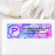 Dieses Label zeichnet sich durch einen pastellfarbenen Aquarellspritzer aus Blau, lila und Rosa mit einem Platzhalter für ein Anfangsbuchstabenmonogramm aus. Die Vorlageninformationen befinden sich auf der rechten Seite des Etiketts. Füllen Sie die Textfelder der Vorlage und den Anfangsbuchstaben mit Ihren Informationen aus.