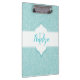 Personalisieren Sie Ihre eigene Zwischenablage mit einer Aquamarinen Monogram-Zwischenablage für Glitzer. Das Design der Zwischenablage verfügt über einen aquamarinen Hintergrund mit Verzierungen, um Ihren Namen und Monogramm für die Personalisierung hinzuzufügen. Glitzer ist Kunstwerk gerendert, und das Endstück enthält keinen Glitzer. Wenn Sie Hilfe bei einer Personalisierung benötigen, kontaktieren Sie mich bitte direkt.