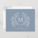 Monogramm-Note-Karte für klassisches dusty Blue Floral Wappen