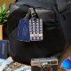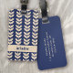 Monogramm des blauen Retro-Vibe-Leaf-Musters Gepäckanhänger