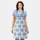 Eine schöne blaue Aquarell-Blumenstruktur wiederholt Oberflächenmuster Design. Ein ovales Emblem ist die Kulisse für Ihren Anfang und eine Linie kreuzen Ihren mit Monogramm Anfang mit einem Bereich für Ihren Namen oder anderen Text. Kompositdesign von Holiday Hearts Designs.