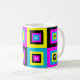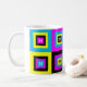 CMYK Graphic Designer Squares Monogram Coffee Tasse für Grafikdesigner und für die Druckindustrie. Moderne, stilvolle CMYK Monogram Tasse, die geometrische Quadrat Muster in den Farben Cyan, Magenta, Gelb und Schwarz zeigt (Schlüssel). In der Mitte jedes kleinen Quadrats ist ein KUNDENBEWEGLICHES MONOGRAM (alle verlinkt), das Sie durch Ihren ersten ersetzen können. Ideal für CMYK-Liebhaber, Grafiker und die Farbkreative in Ihrem Leben. Matching Geschenke sind erhältlich.