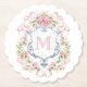 Das elegante Aquarell-Monogramm-Wappen verleiht diesen Brautparty-Papier-Untersetzer einen wunderschönen und zeitlosen Look, den jede zukünftige Braut Liebe. Personalisieren Sie dieses Design mit Ihrem Initial im Wappen. Die Farben sind hellblau, rosa und grau.