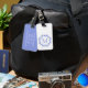 Dieses wunderschöne, an der Küste inspiriert Gepäckanhänger verfügt über einen blauen Seesternkranz auf Weiß mit einem Monogramm, das Sie mit Ihrer Wahl der Anfangs- und Kontaktdaten auf der Rückseite personalisieren können.