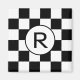 Fügen Sie Ihr Monogramm initial in der Sidebar hinzu, um das klassische schwarz-weiß karierte Muster aus Reihen abwechselnd weißer und schwarzer Quadrate zu personalisieren. Um mehr Schachbrettbilder zu sehen, klicken Sie auf den Link "Rocklawn Arts" unten. Digitales Bild.