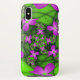 Monogramm des modernen Neonrosa grünen Fraktals Case-Mate iPhone Hülle