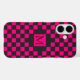 Mit diesem fett-eleganten Design fällt ihr ein rosa und schwarzes Schachbrettmuster auf und ein großes rosa Quadrat in der Mitte mit Monogramm in einem extravaganten Schriftart. Ersetzen Sie die Initiale durch Ihre eigene.