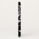 Casemate Handy Gehäuse mit elegantem Muster aus einer Aquarellbilderung von rosa Blume mit blau-grauen Blätter und Stielen. Klassischer schwarzer Hintergrund. Ein weißer Kreis überlagert mit Ihrem Namen und einem Monogramm, das sich im Inneren befindet.