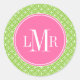 Monogramm des Musters für grüne und rosa Kreise Runder Aufkleber