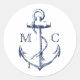 Monogramm des Nautic Navy Blue Anchor Runder Aufkleber