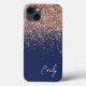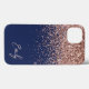 Monogramm des Navy Blue Blink Rose Rose Glitzer Case-Mate iPhone Hülle