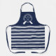 Preppy Schürze in marineblau und weiß für Ihr Seehaus. Fügen Sie Ihren Familiennamen, den Anfangsnamen und das eingestellte Jahr zu einem nautischen Monogramm gekreuzter Paddeln über einen Seilkreis hinzu. Die Schürze ist mit blau-weißen Streifen versehen.