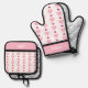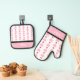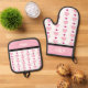 Monogramm des niedlichen rosa und weißen Herzmuste Ofenhandschuh & Topflappen-Set