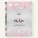 Falscher Silver metallic looking background decorated with pink falglitter dust. Personalize and add your first name, monogram initials, full name and a year.