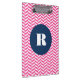 Moderne und stilvolle Monogramm-Clipboard mit heißrosa Herringbone-Muster und marineblauen runden Anhängern. Das ist ein personalisiertes Geschenk. Dieses Design ist in verschiedenen Farben und Produkten erhältlich.