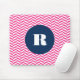 Modernes und stilvolles Monogramm-Mauspad mit hellrosa Herringbone-Muster und marineblauem rundem Tag. Das ist ein personalisiertes Geschenk. Dieses Design ist in verschiedenen Farben und Produkten erhältlich.