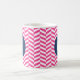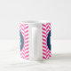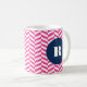 Moderne und stilvolle Monogramm-Tasse mit heißrosa Herringbone-Muster mit marineblau rundem Tag. Das ist ein personalisiertes Geschenk. Dieses Design ist in verschiedenen Farben und Produkten erhältlich.