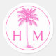 Monogramm des rosa und weißen Palm Palmetto Tree Runder Aufkleber