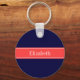 Monogramm des roten Ribbon-Namens "Solid Navy Blue Schlüsselanhänger