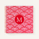 Monogramm des roten und weißen Scallop-Musters Notizbuch