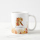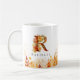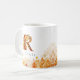 Elegante Aquarellfarben-Blätter umrahmen den Boden dieser Tasse, während der Buchstabe R eine Collage aus festlichen Fallen rot-orangen und gelben Blätter ist, Personalisieren mit einem Namen, um es einzigartig zu machen.