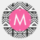 Monogramm des Schwarz-weiß rosa geometrischen Stam Runder Aufkleber