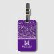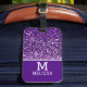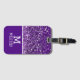 Personalisierte Gepäckanhänger mit einem trendigen Lila Glitzer-Druck.Fügen Sie Ihren Namen und Monogramm-Initial.