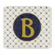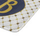 Elegantes geometrisches Gittermuster aus Gold und Weiß. Personalisieren Sie mit dem mittleren Monogramm in Gold auf blauem Hintergrund.